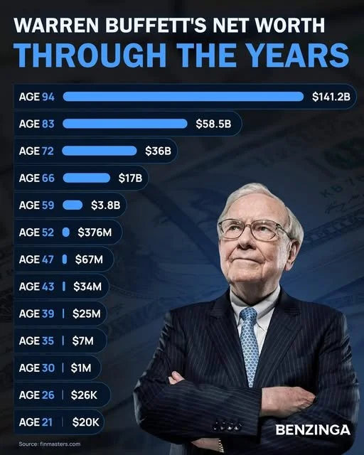The best example of this is illustrated by Warren Buffett. While he’s regarded as one of the greatest investors of all time, most of his wealth was accumulated later in life. An astounding 99% of his $140 billion fortune was accumulated after the age of 52. Let that sink in.